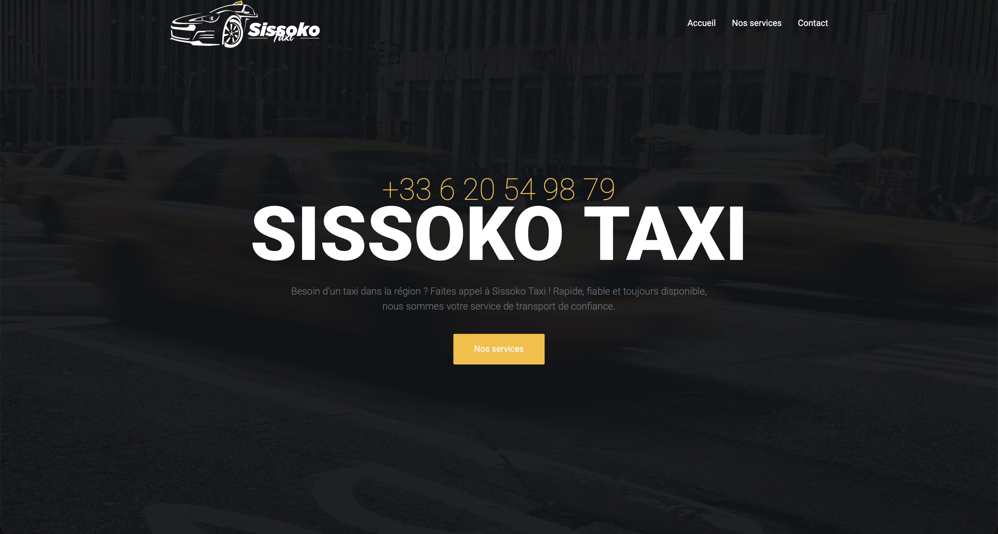 Le site a été conçu comme un véritable outil professionnel au service d’une activité de transport moderne et efficace. Dès l’arrivée sur le site, l’utilisateur est accueilli par un design clair, professionnel et rassurant, pensé avant tout pour une utilisation mobile, essentielle dans le secteur du taxi.